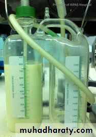 • 1. Pleural fluid analysis: odorless milky white appearance with a creamy layer on standing.• 2. Lymphangiography