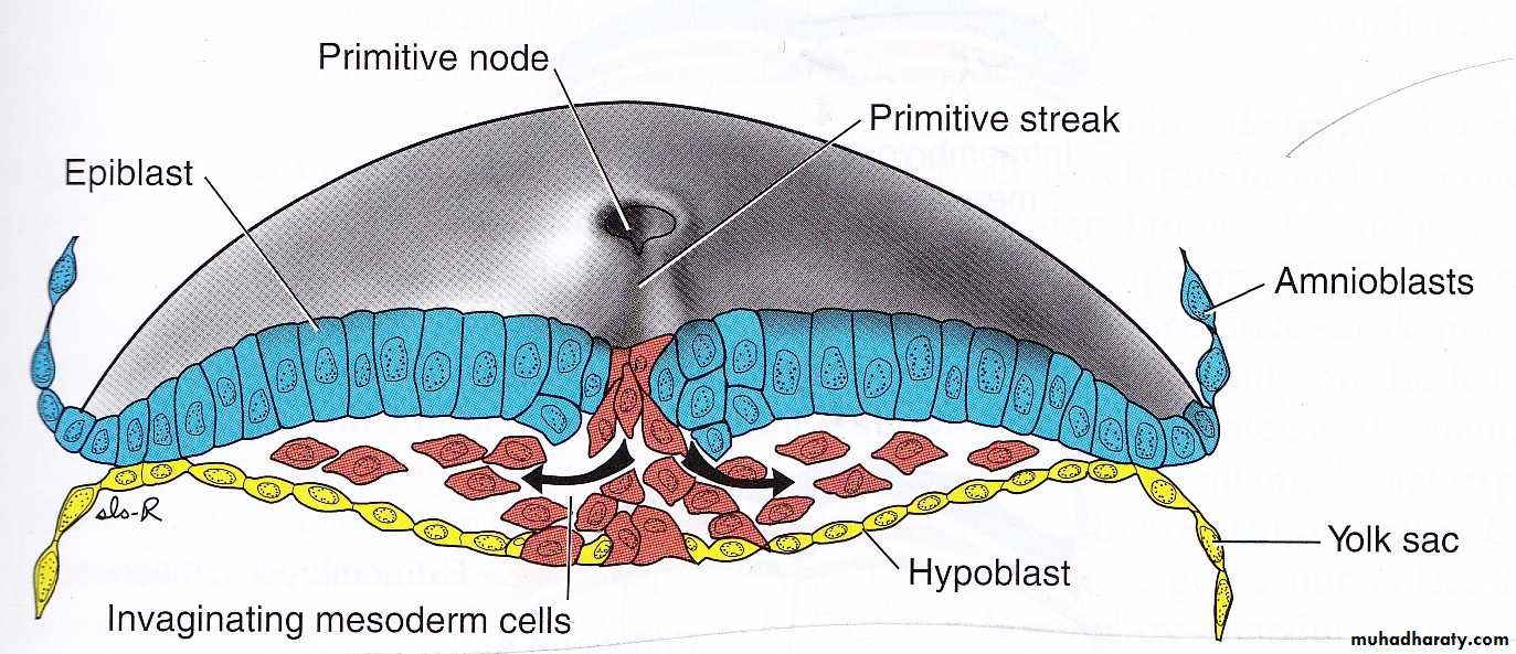 -FORMATION OF PRIMITIVE STREAK &PRIMITIVE NODE-IMVAGINATION OF EPIBLAST CELL THROUGH PRIMITIVE STREAK