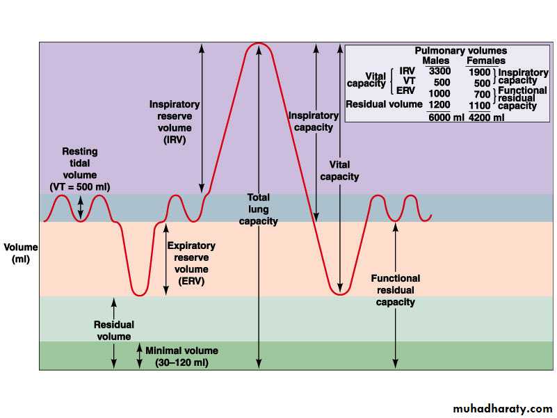 Lung compliance: Which equals to change in volume divided by change in pressure (1 cm = 200 ml). That is, every time the transpulmonary pressure increases 1 centimeter of water, the lung volume, after 10 to 20 seconds, will expand 200 milliliters.