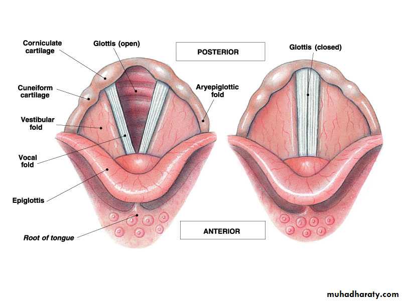 Epiglottis and vestibular folds prevent swallowed material from moving into larynx