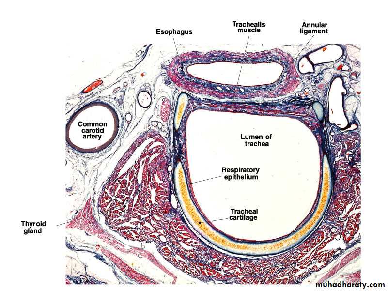 Trachea to terminal bronchioles which is ciliated for removal of debris