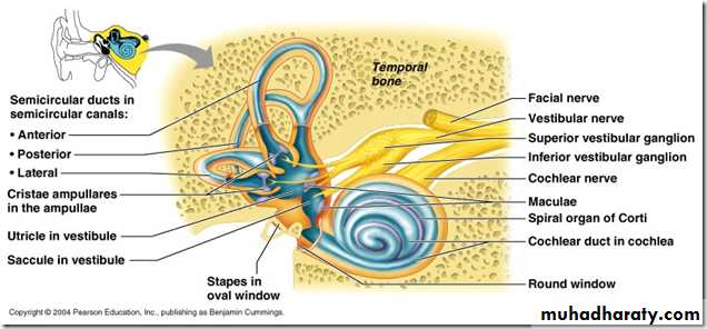 • Vestibule: composed of utricle and Saccule, Its responsible for linear movements acceleration and deceleration2.The 3 semicircular canals :