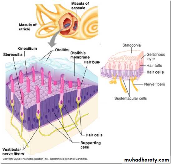 • Macula (otolith organ) inUtricle ,oriented in horizontal plane it Responds to:
