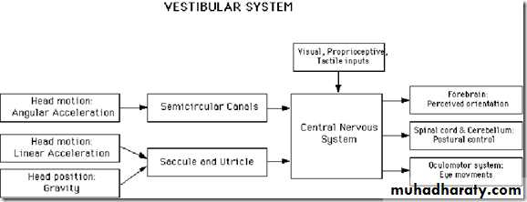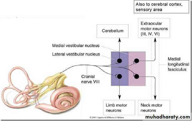 • Gives subjective sensation to motion & spatial orientation along with visual, proprioceptive and cutaneous (exteroceptive) , inputs:• Vestibular input to regions of the nervous system controlling eye movements: