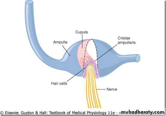• Rotational acceleration in the plane of a given semicircular canal stimulates its crista.