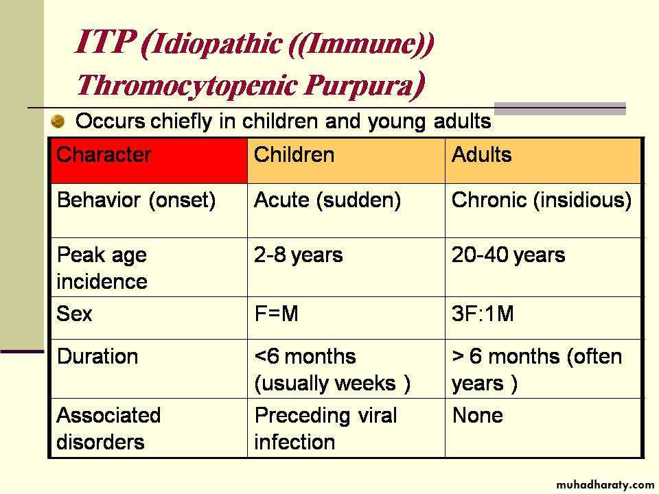 ITP (Idiopathic ((Immune)) Thromocytopenic Purpura)