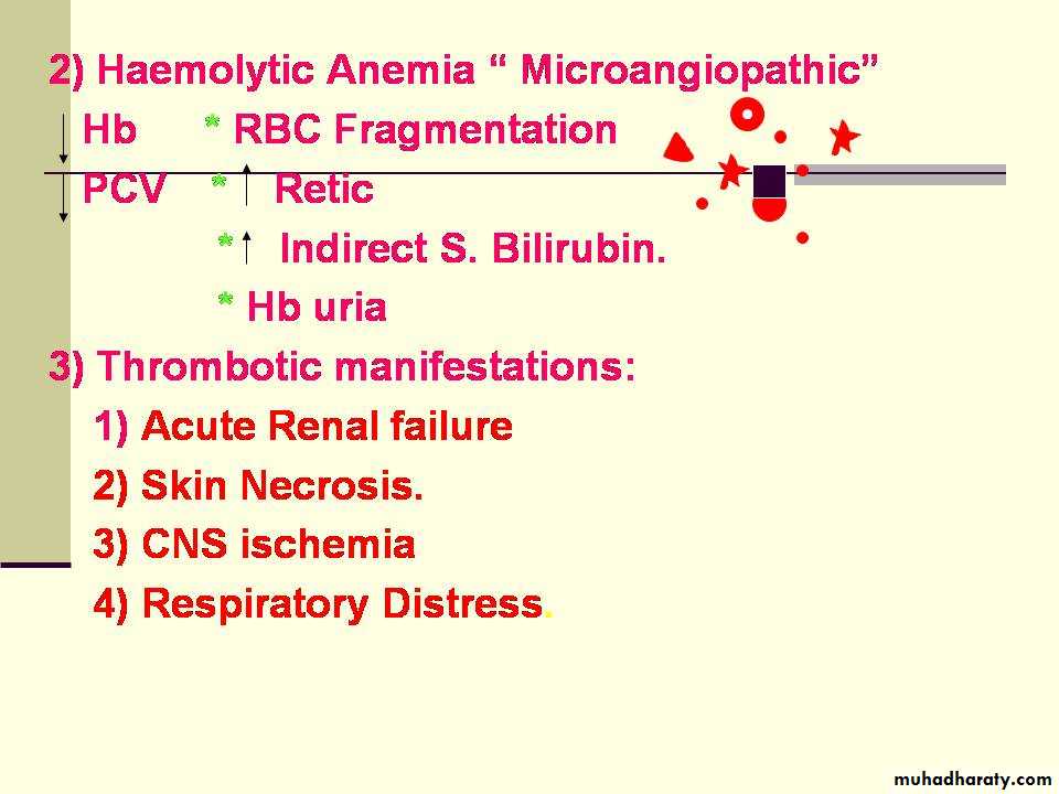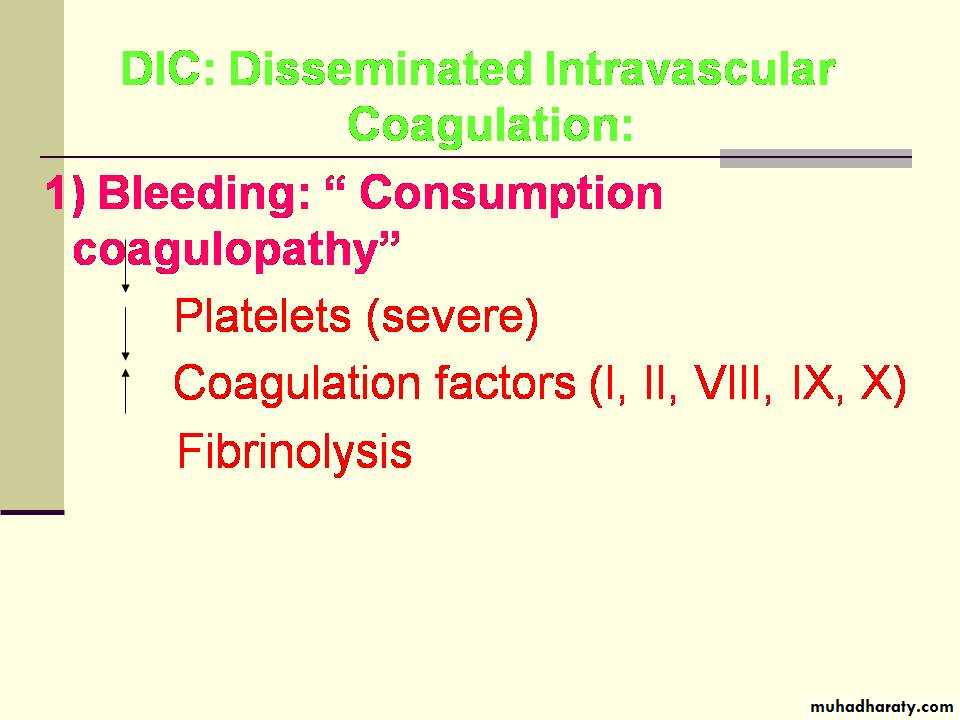 Lead to thrombocytopenia ,platelet dysfunction ,(II ,VII ,IX ,X ,XIII ) ,DIC (haemolytic uraemic syndrome).Warfarin therapy