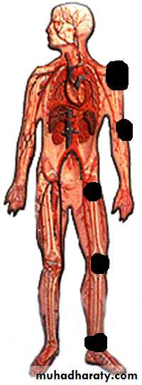 This is a diagram of the joints most commonly affected by Hemophilia. It most often occurs at the knees, hips, ankles, shoulders, and elbows