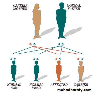 Normal ♂ Carrier ♀50% of daughters of carrier female are carriers .