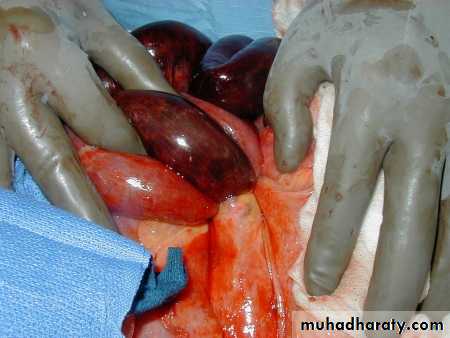 Reduction of contents if healthy otherwise gangrenous tissue must be excised.