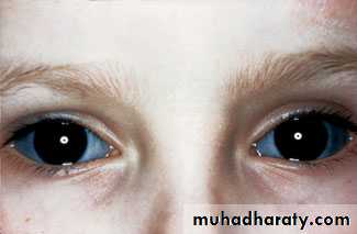 • Sclerae pale blue or normal.