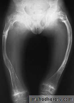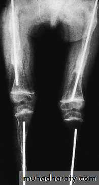 Long-bone deformities are common, these may require operative correction, usually by 4 or 5 years of age. osteotomies are performed and the bone fragments are then realigned on a straight intra medullary