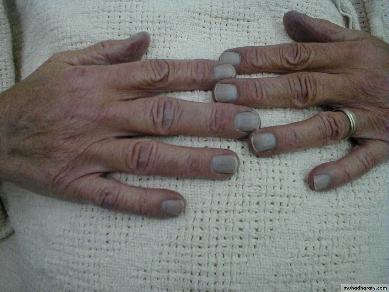 The cause of clubbing and hypertrophic osteoarthropathy may reflect platelet clumping and local release of platelet-derived growth factor at the nail bed.