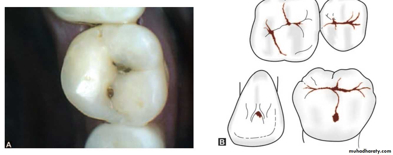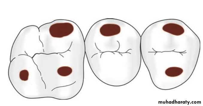 Class I–Pit and fissure preparationsoccur on the occlusal surfaces of premolars and molars, the occlusal two-third of buccal and lingual surface of molars, lingual surface of incisors and any other abnormal position