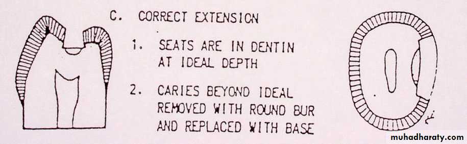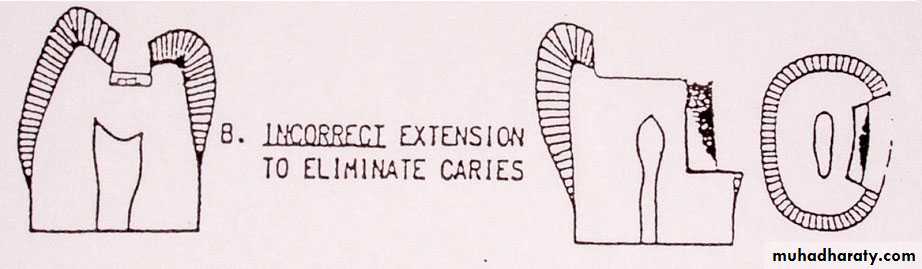 Extension for prevention means the placing the margins of preparations at areas that would be cleaned by the excursions of food during chewing.It is done with the objective of preventing the recurrence of caries at the margins of fillings where the recurrence of decay is most commonly seen.