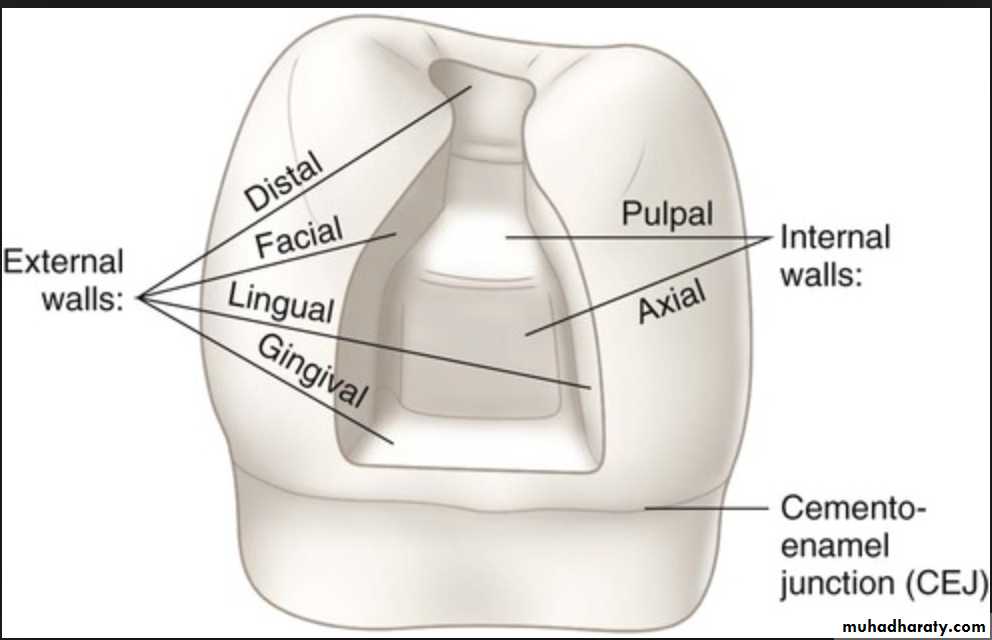 Floor is a prepared wall which is usually flat and perpendicular to the occlusal forces directed occluso-gingivally, for example, pulpal and gingival wallsBuccal