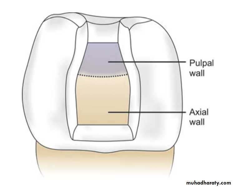A pulpal wall is an internal wall that is towards the pulp and covering the pulp. It may be both vertical and perpendicular to the long axis of tooth.Axial Wall