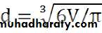 In naturally occurring particulate solids and milled solids, the shape of particles is irregular, and the size of the particles varies within the range of the largest and smallest particles. For convenience of mathematical treatment, an irregular particle is considered in terms of an equivalent sphere. The size of the particle can then be expressed by a single parameter that is the diameter (d). It is only required that the surface area is proportional to the square of the diameter and the volume is proportional to the cube of the diameter.The volume of a particle may be determined by displacement in a liquid and equated to the volume of a hypothetic sphere possessing an equivalent diameter. As the volume of a sphere is πd3/6, the equivalent diameter of an irregular particle with a volume V is: