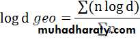 • Using the logarithmic form of this equation, the geometric mean diameter of a number of particles is calculated by using the following equation: