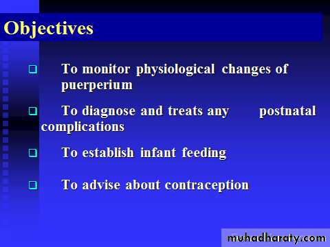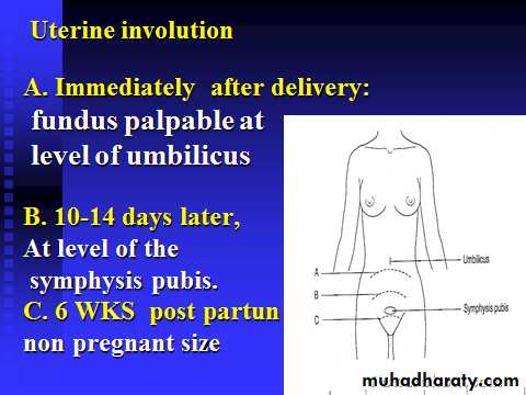 By Dr. ishraq mohammedThe puerperium refers to 6 weeks period following childbirth , when considerable changes occur before return to the pre-pregnancy state .