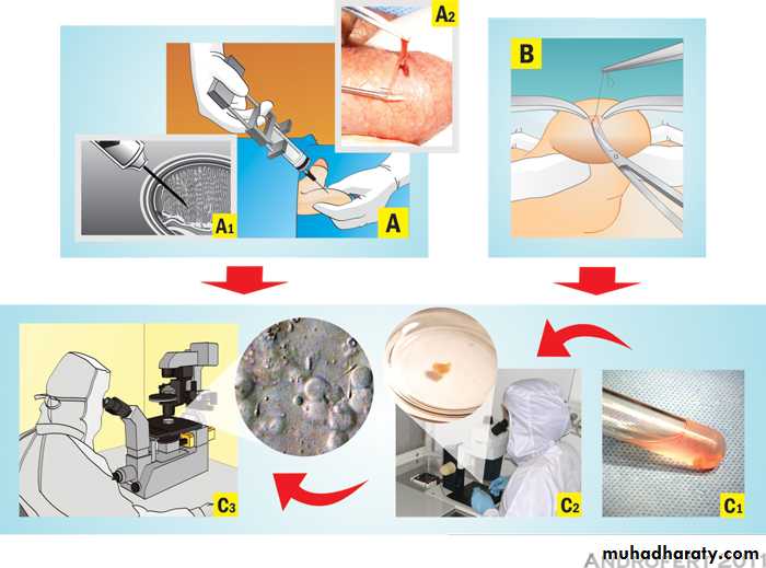 Used for obstructive azoospermia. Sperm are removed directly from the epididymis by microsurgical epididymal sperm aspiration (MESA) or by percutaneous retrieval (PESA). If these methods fail, testicular sperm extraction (TESE) or aspiration (TESA) may be tried. Sperm undergo cryopreservation until required. Later, they are separated from seminal fluid by dilution and centrifuge methods, with further selection of motile sperm and normal forms using Percoll gradiant techniques.