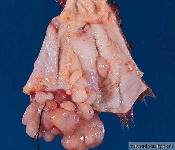 Sarcoma botrryoides (embryonal rhabdomyosarcoma) of the vagina: Note the grape like configuration of the tumor