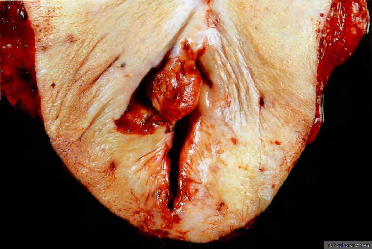 Sometimes it projects into the endometrial cavity.
