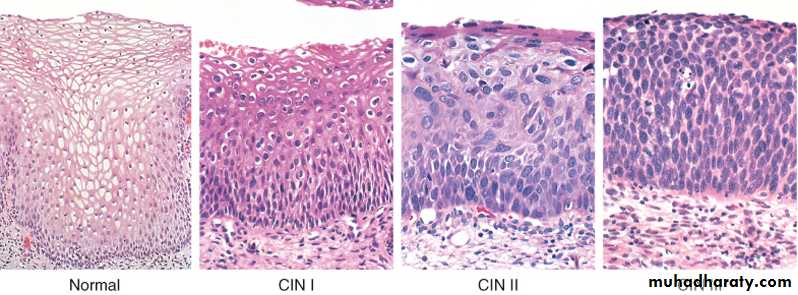 CIN I: Mild dysplasiaCIN II: Moderate dysplasia