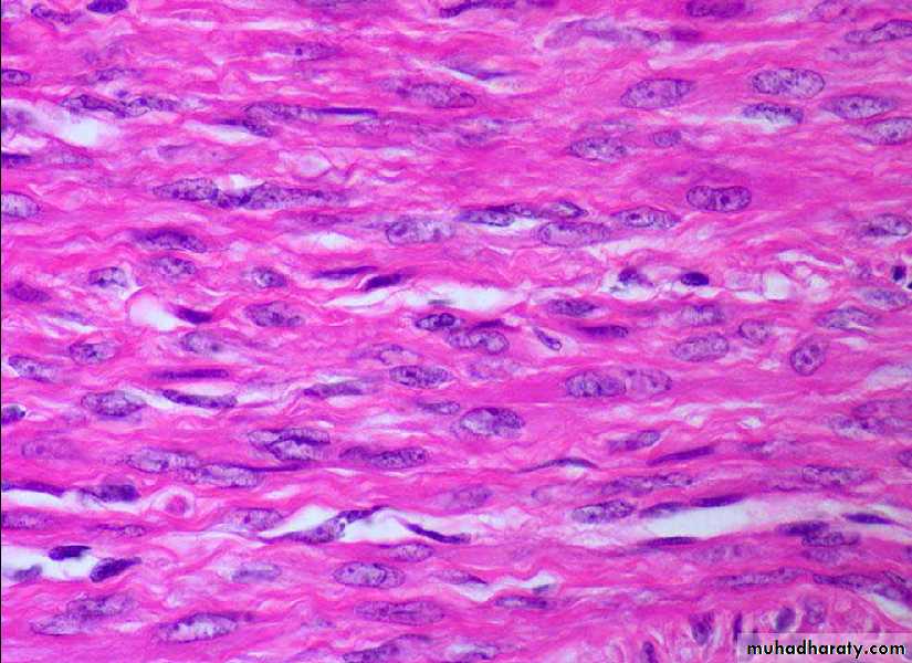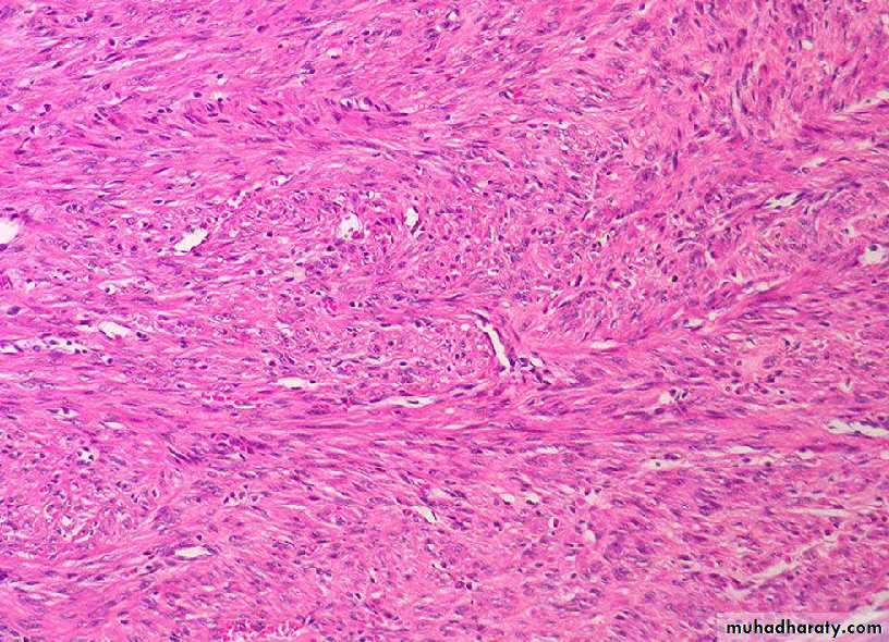 Microscopic featuresThere are whorling bundles of smooth muscle cells.