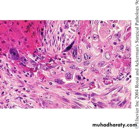 EMC may be exophytic (fungating, polypoid) or infiltrative.Microscopic features