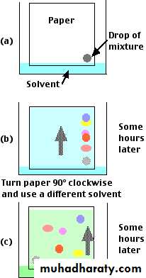 Sometimes, it is difficult to separate a complex mixture of substances by a single run with one solvent system. In such a case, a second run is carried out by a different solvent system, in a direction perpendicular to the first run. This is referred to as- two dimensional chromatography which enhances the separation of a mixture in to individual components.