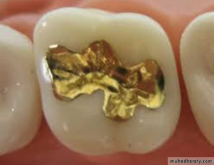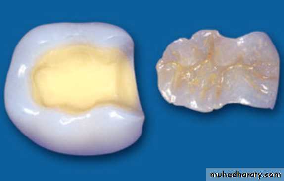 Is an indirect restoration (filling) consisting of a solid substance (as gold, porcelain or less often a cured composite resin) fitted to a cavity in a tooth and cemented into place.INDIRECT RESTORATIONS