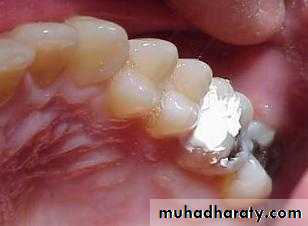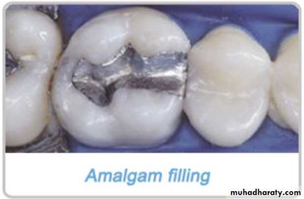Silver amalgam (mainly consists of mercury and silver )Today amalgam is used most commonly in the posterior teeth. It is one of the oldest filling materials and has been used (and improved) for more than 150 years.