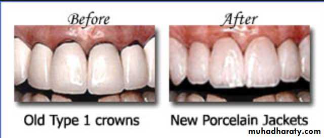 Crowns as metal-free "Jacket crowns” made of Porcelain (ceramics)