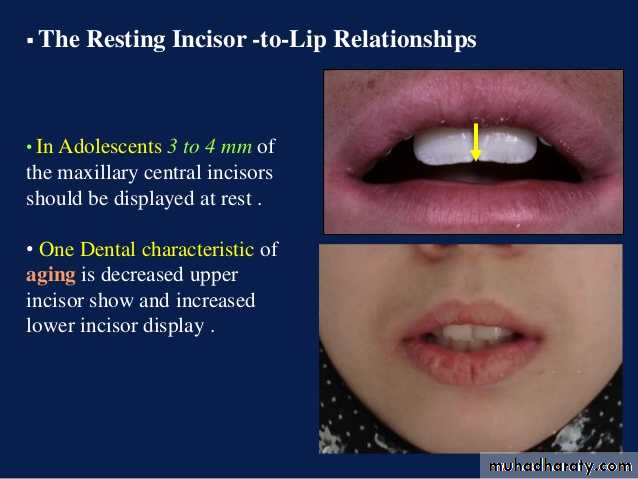 • In medium lip length 1.5-2 mm seen from the maxillary central incisors.