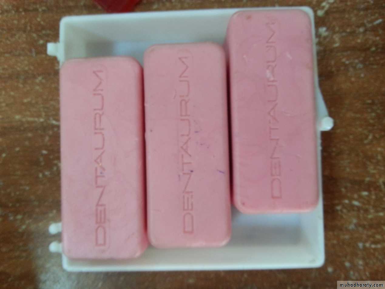 Used for making temporary denture base. Sometimes it is used in making occlusal rims.6 – readymade bite rim wax.