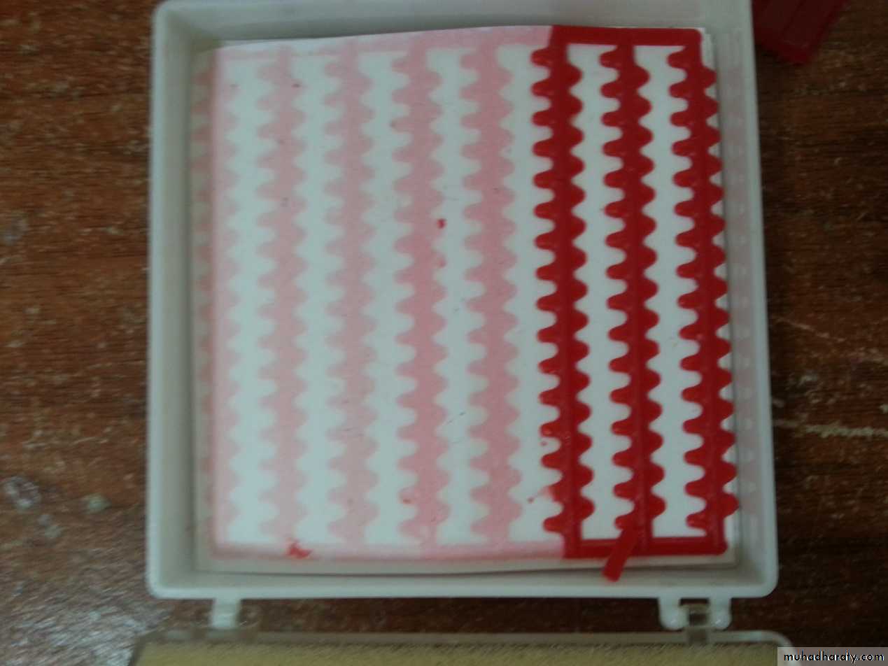 Used for making occlusal rims for registration of vertical dimension, centric relation and arrangement of teeth.It is more preferable than modeling wax in making occlusal rims.B – processing wax: