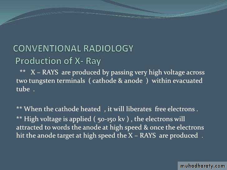 Proper use of imaging department.How X-rays are produced in Conventional Radiography.