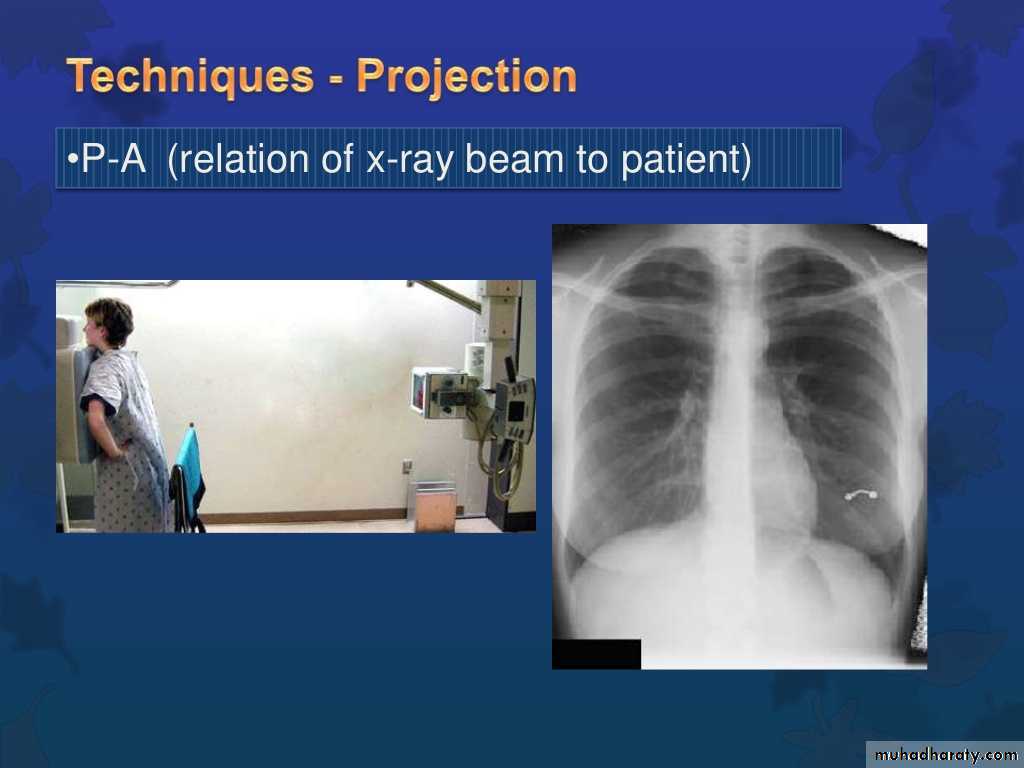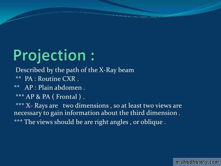 -Projections in conventional radiology:…PA. AP. Lateral, Horizontal X-ray beam, Lateral decubitus