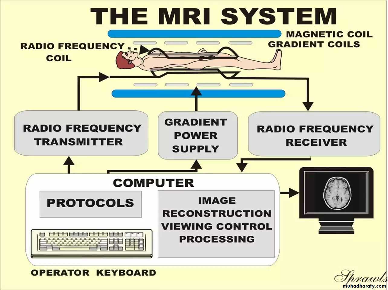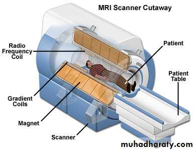 Makes use of the fact that body tissue contains lots of water (and hence protons) which gets aligned to large magnetic field to produce signal.