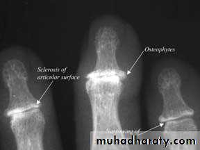 2nd and 3rd DIP shows osteophytes and subchondral sclerosis (Heberden’s nodes)