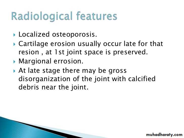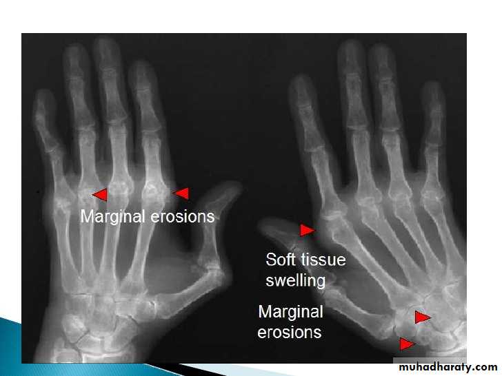 3.Marginal erosions often first seen at 2nd and 3rd MCPs and 3rd PIP articulations