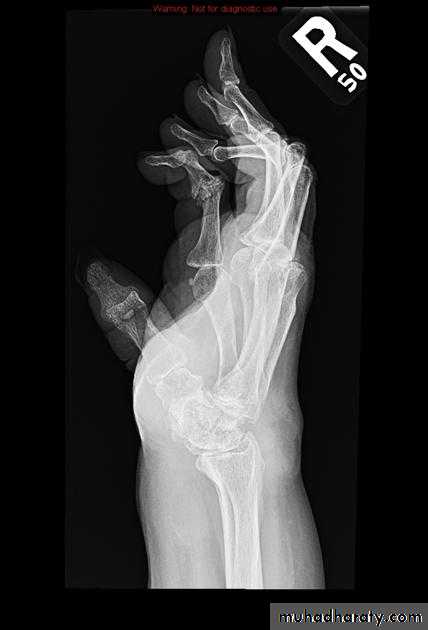 Rheumatoid wrist: articular destruction, carpal fusion and carpal collapse.