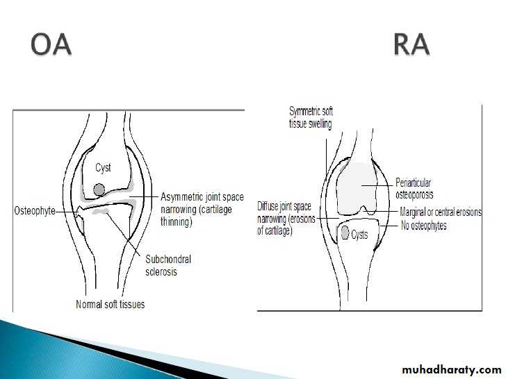 There are three types of arthritis which ca be distinguished radiologically :