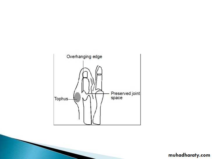 3.Marginal paraarticular erosions; overhanging edges