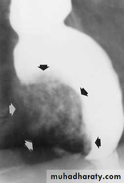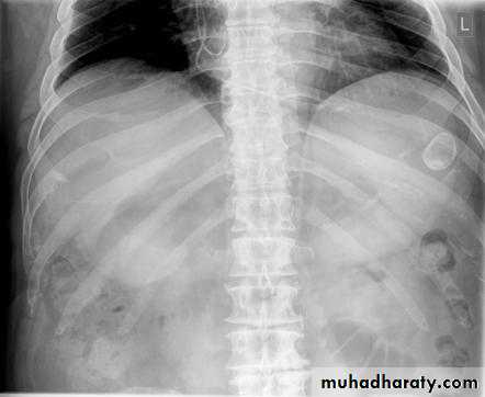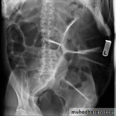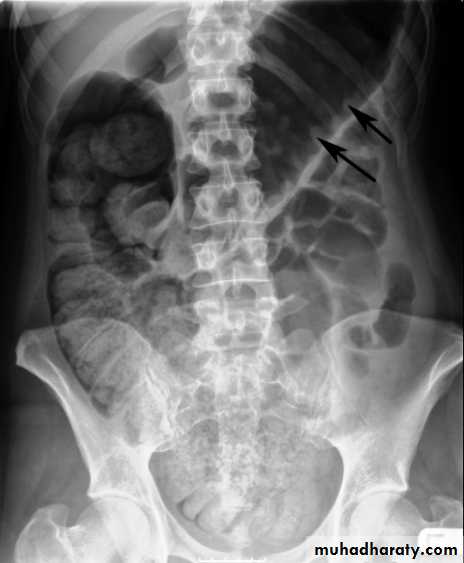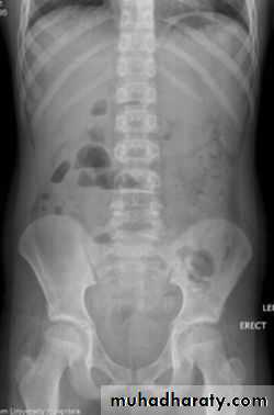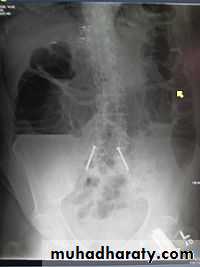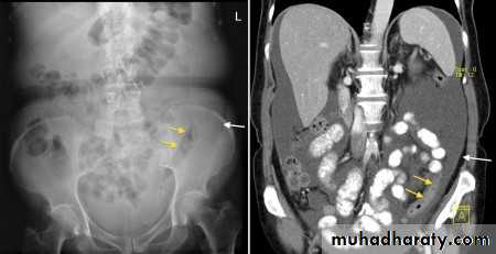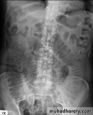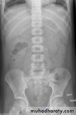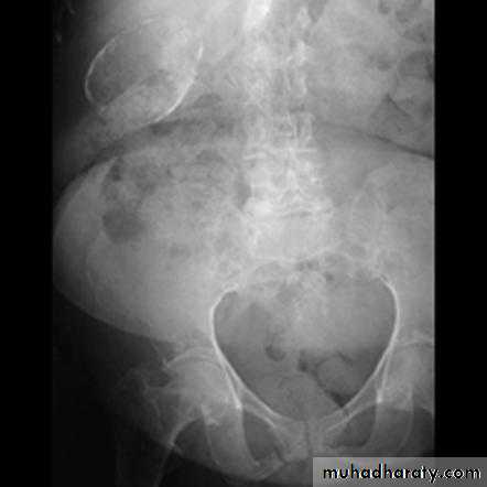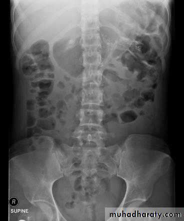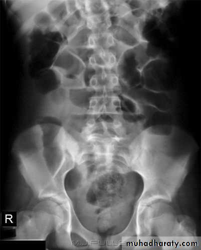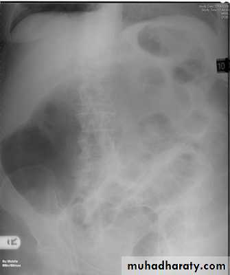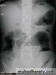 • Generalized paralytic ileus: SB and LB dilatation, gas may be present in the rectum