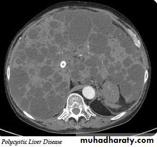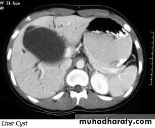 Simple cysts: may be single or multiple, usually congenital , some are due to infectionMultiple hepatic cysts occur in adult polycystic disease