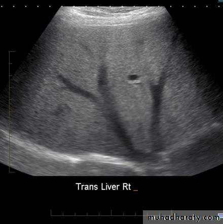LiverUltrasound : The normal liver parenchyma is of uniform echotexture with portal and hepatic vessels. The normal liver size and shape is variable. Focal masses are noted as alteration of normal echo pattern. They can be divided into cysts, solid or complex masses.