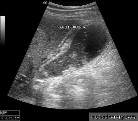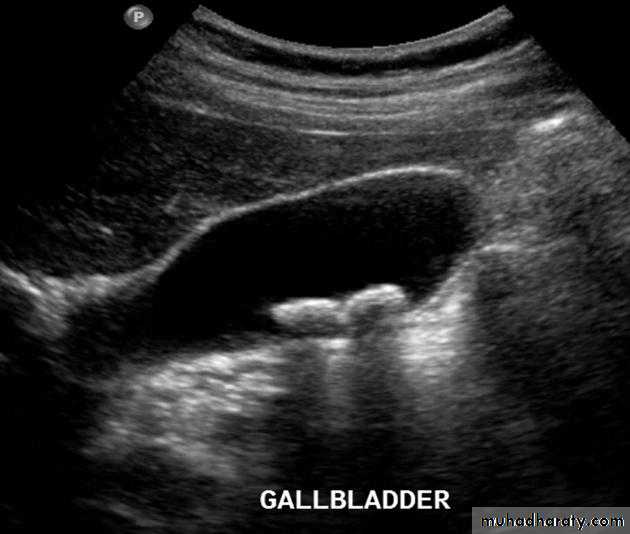 The normal GB has a thin wall< 3 mm, and thickening of wall suggest either acute or chronic cholecystitis. Stones > 2 mm can be identified.