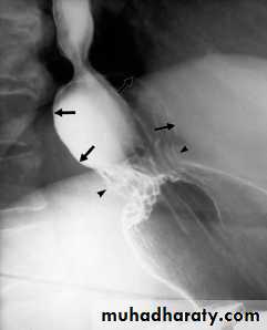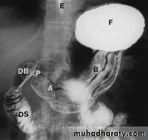 Relatively large amounts of gas are usually present in the stomach and colon in a normal patient.The stomach can be readily identified by it's location, gastric rugae in the supine view , and by the air fluid level beneath the left hemidiaphragm in the erect view